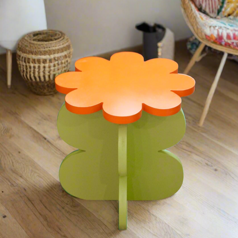 Upgrade your home with Flower Me- Side table. This wooden table boasts an aesthetic design that adds a touch of cool to any room. The cheerful design and color combo bring a contemporary and non-boring vibe to your space. Elevate your home with Flower Me!
