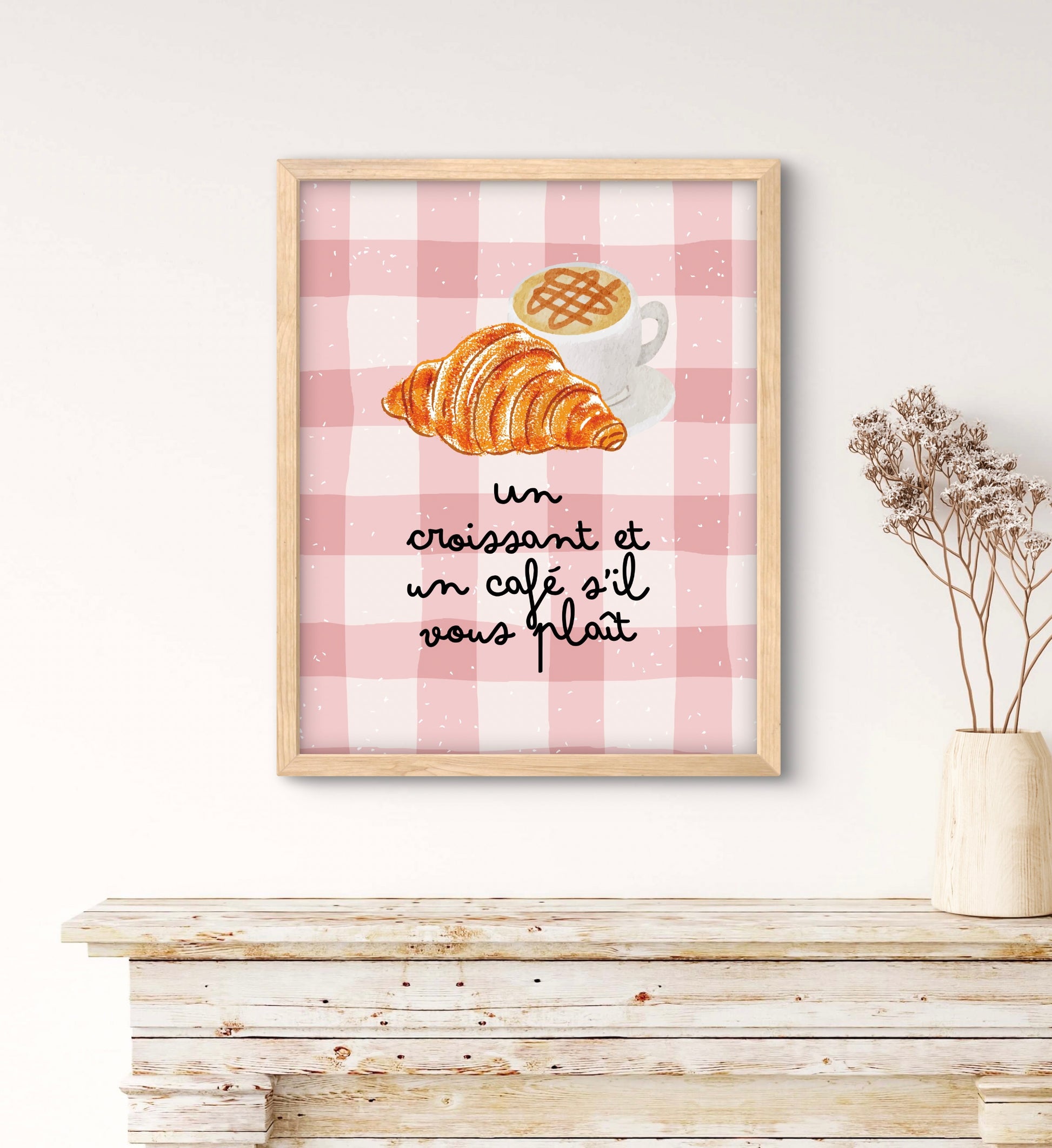 This wall art is perfect for aficionados of French coffee and croissants. Choose from a variety of sizes.